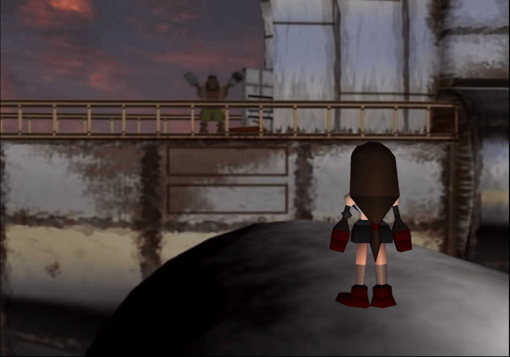 I’ve always remembered the scene with Barret comforting Tifa after Cloud falls through the suspended structure over Sector 6. It has an almost Rankin/Bass stop-motion quality. Tifa’s escape from Junon to the Highwind also had chibi dolls.