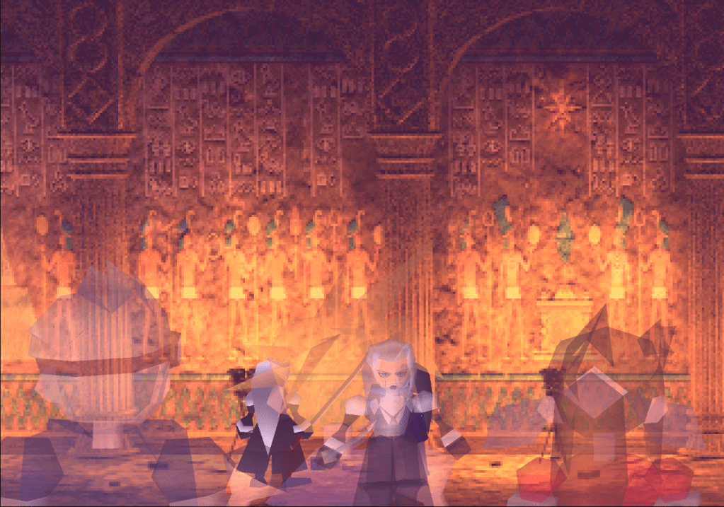 The crowd that was determined to resurrect Aerith latched onto a few of these smaller mysteries. If you manage to get back into Midgar’s ground level late in the game, there is a ghost of Aerith in the church in the Sector 5 slums. Aerith’s polygon flickers for a moment and vanishes before you have the chance to approach her. In Wall Market, at the beginning of the game, Cloud has an uncanny hallucination of a doppelgänger in the Honeybee Inn which has no clear in-world explanation.
