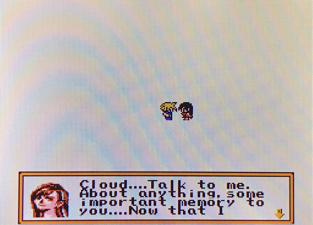 For example: one prevalent myth about resurrecting Aerith was that there was some hidden way to throw a phoenix down into the pond Cloud lowers her body into. On my own favorite among these ancient websites (link below), the blogger Seraphim debunked a number of theories before getting to his own. When he came to the phoenix down chestnut, he explained that a phoenix down does not actually bring anyone back from the dead. When a character’s HP hits 0, it symbolizes becoming too weak to continue fighting. In a lot of online conversations between fans, the symbolic meaning of the mechanics were a common topic. Another one was the relationship between the battle screen and what was literally going on during combat.